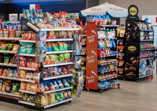 CTS offers all the snacks you love with brands you recognize including Coca-Cola, Frito-Lay, Chickasaw Pecans and more! You’ll also find Chickasaw-owned Bedré Fine Chocolate products at all locations.